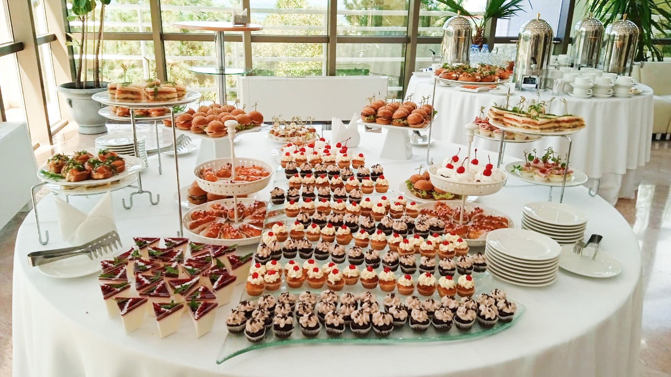 Различные конференции, семинары и подобные мероприятия зачастую длятся довольно долго, поэтому без перерыва обойтись сложно. Кофе-брейки помогут вашим гостям ненадолго отвлечься и перекусить за чашечкой кофе или чая. Их организация требует определенного опыта, чтобы учесть все детали и помочь участникам встречи насладиться перерывом. Курортный комплекс «Надежда. SPA & Морской рай» предлагает не только уютные и просторные конференц-залы, но и все необходимое для проведения важных мероприятий. Мы организуем кофе-брейк для вас и ваших гостей, во время которого вы сможете попробовать вкусные закуски от наших поваров.